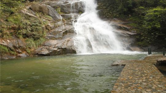 青龙大瀑布位于武夷山九曲溪的上游,瀑布周围的森林十分茂密,森林群落近乎原始,所以空气非常好。中亚热带的生物物种在这里都能找到踪影,峡谷游道两边挂牌的珍稀观赏树种就有100多种,来此可以看到许多平时比较难见的珍稀树种。主要的景点就是瀑布本身,瀑布由三级大瀑布群组合而成,深谷绝壁上,一条大瀑布犹如青龙从峡谷间呼啸而出,气势宏伟壮观。它长200多米,落差120多米,宽处40余米,呈阶梯状。一道道水波飞流而下,直泻深谷,让人真切地感受到大自然无法抗拒的魅力。到了地方后,需要过个小桥,这个小桥也算这里的一个景点,叫做“一步桥”,原因就是桥很短,可一步跨越,跨过这一步即进入景区。其他景区景点有石乳青冈、灵蛇炼石、青蜥望水、乱石粼波、通天桥、翠玉朦胧、十八重山等。都是指这里的各种自然景象。在石头上的树叫青冈,灵蛇炼石是指弯弯曲曲的树根像蛇一样缠绕在岩石上。通天桥是进入岩生群落前的一座桥。过桥后就是原始森林区,能看到岩生植物群落、藤生植物群落。翠玉朦胧是指在瀑布底下,溪水平缓的地段会形成潭,潭水碧绿,就像天然的翠玉。瀑布的正方有一重重高山,即为十八重山。远离人群、看瀑布,亲近自然,爬爬山,呼吸新鲜空气,就是来此的主要目的。