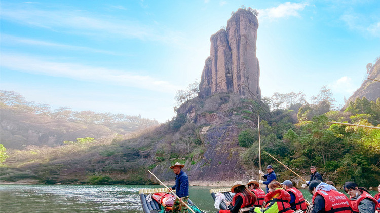 武夷山+九曲溪竹筏漂流+天游峰+一线天景区2日1晚跟团游·【四季武夷 丹霞秘境】登天游泛九曲乘竹筏观春色盎然【当地人必打卡『1-12人精品小团 』晒布岩探武侠壮景<武夷山免门票>品茶香悠韵<三钻酒店>含1早3正餐武夷山三钻酒店>武夷山免门票>