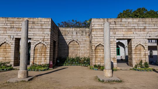 拜亭前有个大石庭,供古今官民朝拜和活动,每当有活动的时候就特别热闹。石庭两边分列着八棵大榕树,树下排列着11座唐、宋、明时期不同形式的古经幢、小舍利塔,以及两只贔屃 。
