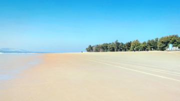黄金沙滩位于湄洲岛的西南端,是岛上迷人的沙滩。它北拥千畴绿林,南临万顷碧波,东连三湾滩,西接3000吨对台客运码头,沙滩绵延3000米,纵深300-500米,坡度5%,呈波浪状缓缓斜入大海,是理想的避暑度假休闲宝地。被英国旅行家曼顿赞美为“东方的夏威夷”。