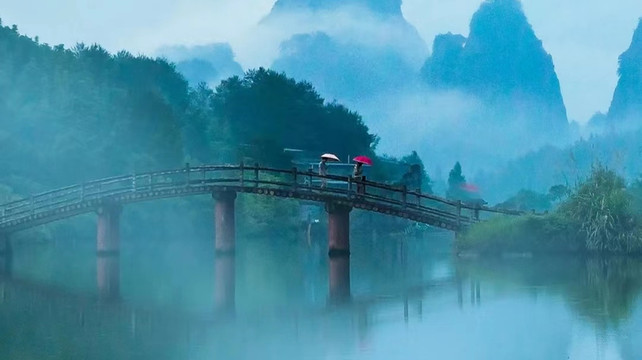 乘竹筏观山景听溪声