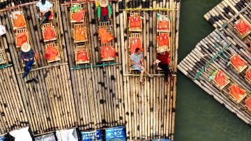 乘竹筏观山景听溪声