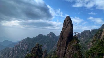 从东部金沙索道上山的游人较多,上来即是精华的南清园。大约半小时走到“巨蟒出山”,左边不远便是“东方女神”。往西过玉皇顶、“三龙出海”走上阳光海岸的高空栈道,可俯瞰下面的田园风光。阳光海岸和后面的三清福地-西海岸正好串成一个环形旅游线路,三清福地的道教古建筑群以三清宫为核心,依据“先天八卦图”的方位布局,十分精巧。其中,风雷塔是许多游客争相合影的地方。在此休整一会儿,继续往前便是西海岸的高空栈道。栈道靠近三清宫的地方,“猴王献宝”也是山中的奇石之一。下午正好在栈道上看三清山云海和晚霞。