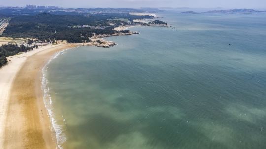 平潭岛北、东、南三面有长江澳、海坛湾、坛南湾三大海滨沙滩,沙质细白,海水清澈湛蓝,相互连接,背后有葱郁的防护林带,海上有岛屿岩礁,景色十分宜人。