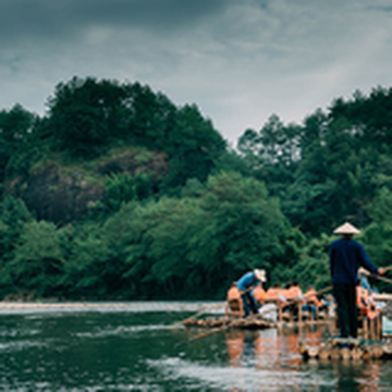 2、九曲溪竹筏漂流相对平稳,乘坐无年龄限制,您可放心乘坐;