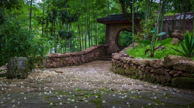 前临溪流、背倚秀峰