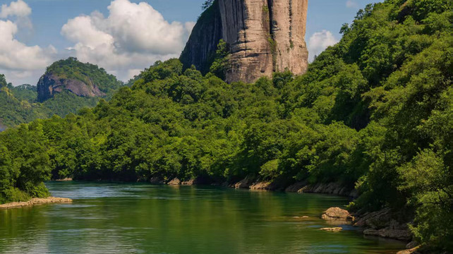 欣赏自然风光:乘坐竹筏顺流而下,可以欣赏两岸丹霞地貌的奇峰怪石,感受 “舟行碧波上,人在画中游” 的诗意,沿途还能看到齐云峰、象鼻岩、天游峰、玉女峰、大王峰等众多景点