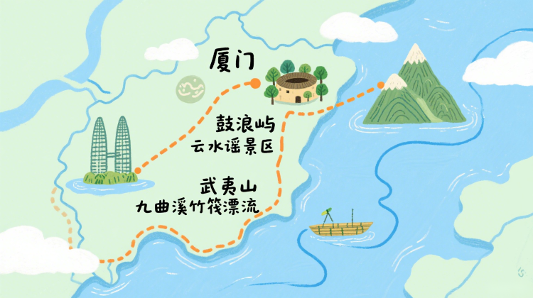 厦门+鼓浪屿+云水谣景区+武夷山+九曲溪漂流7日6晚私家团